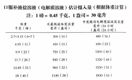 寶寶腹瀉后約3-4小時(shí)就需及時(shí)補(bǔ)充水和電解質(zhì)溶液,補(bǔ)充不及時(shí)就很容易使其造成脫水甚至死亡,建議購(gòu)買補(bǔ)液鹽溶液進(jìn)行水分的補(bǔ)充,預(yù)計(jì)攝入量如下表:
